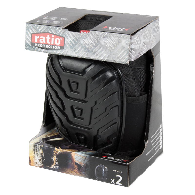 Confeccionada con poliéster de alta densidad 600D, con 12,7 mm de relleno de espuma. Destaca la aplicación de gel inyectado anticompresión para un mayor confort y el doble sistema de fijación, que garantiza un ajuste óptimo. Se presenta en una caja que contiene un juego de 2 unidades.