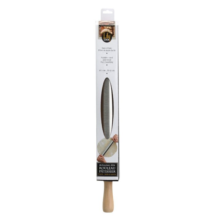 Este rodillo de amasar tiene el mango en madera y el rodillo en acero inoxidable. Con el podrás amasar y extender tus masas de pizzas, empanadas o pan con mayor facilidad. Dispone de agarre cómodo y es fácil de manejar.