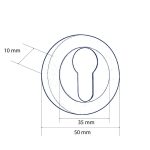 Manilla con roseta redonda, sencilla y elegante, fabricada en aluminio/Zamak de acabados en negro. Con bocallave en forma de pera. Tiene un diámetro de 50 mm y viene presentada en una caja. Puedes consultar el croquis que tenemos colgado en nuestra web. Se sirven 10 unidades.