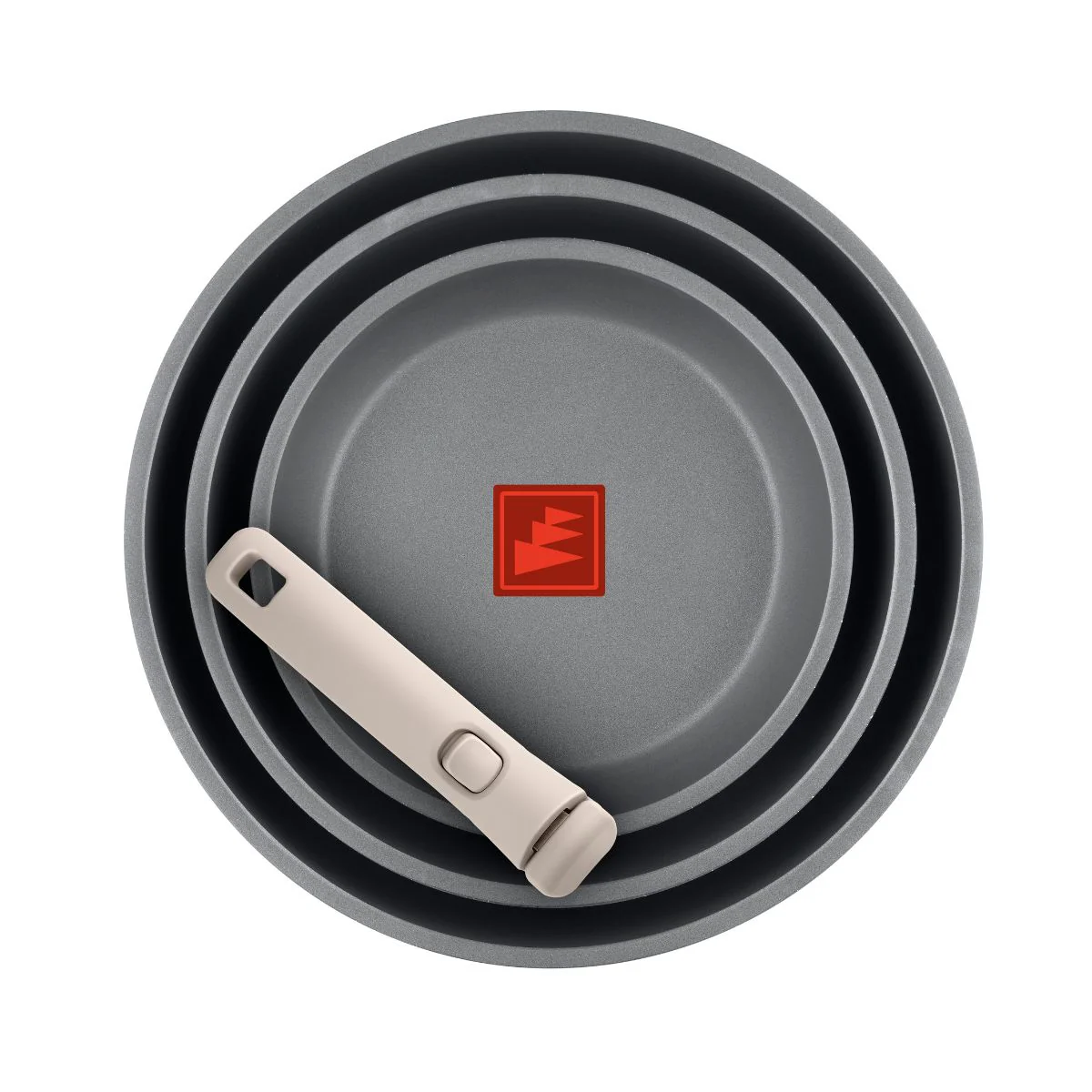 Sartén apilable con mango desmontable One Click, diseñada para optimizar el espacio y ofrecer un rendimiento eficiente. Fabricada en aluminio forjado 100% reciclado, es compatible con todo tipo de cocinas e incorpora indicador de temperatura TherMonix.