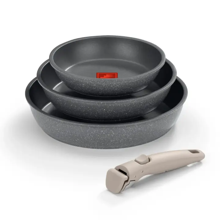 Fabricada en aluminio forjado 100% reciclado y libre de PFOA, asegura una excelente distribución del calor y una cocción homogénea. El mango desmontable, con acabado soft-touch, ofrece comodidad, seguridad y una fijación firme durante el uso.