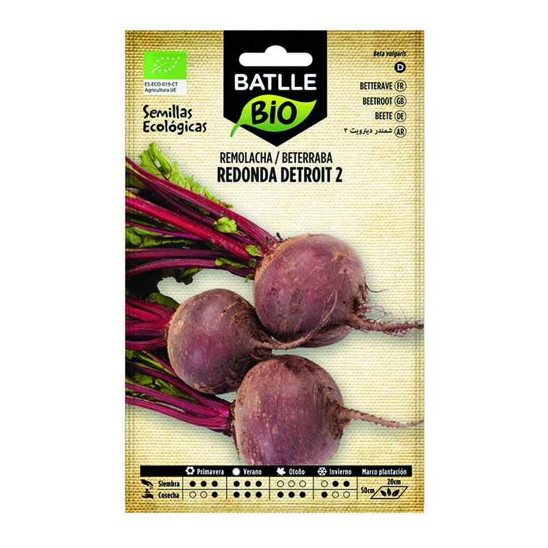 La Remolacha Detroit 2 BATLLE Eco es una variedad de crecimiento vigoroso, con raíces uniformes de color rojo intenso y sabor dulce. Apta para cultivo en huertos o macetas, ofrece una cosecha abundante y natural, perfecta para una alimentación saludable y ecológica.