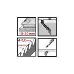 Sierra de calar especial para el corte en distintos tipos de materiales: madera, postformado y contrachapado. Su tipo de corte es rápido/recto gracias a su paso de diente progresivo de 4-5,2 mm. Puedes cortar tableros y materiales entre 5-50 mm. El set de 25 sierras viene presentado en un blíster.