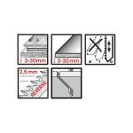 Sierra de calar especial para el corte en distintos tipos de materiales: madera, madera encolada, contrachapado y plástico. Su tipo de corte es limpio/recto gracias a su paso de diente de 2,5 mm. Puedes cortar tableros y materiales entre 3-30 mm. El set de 3 sierras viene presentado en un blíster.