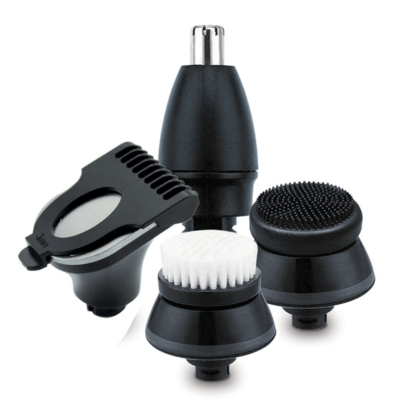 Con el set JOCCA tendrás el rostro con un aspecto saludable además de limpio y más luminoso. Es ideal para barbas, bigote, lineas de cuello y patillas. Está equipado por cabezal de afeitado 5D con cuchillas de acero inoxidable, dispone de distintos cabezales para poder recortar también vello de la nariz y orejas sin tirones. Además, tiene un cepillo facial para dar un acabado luminoso al rostro. Funciona mediante batería recargable con autonomía de 1 hora y se carga mediante un cable USB.