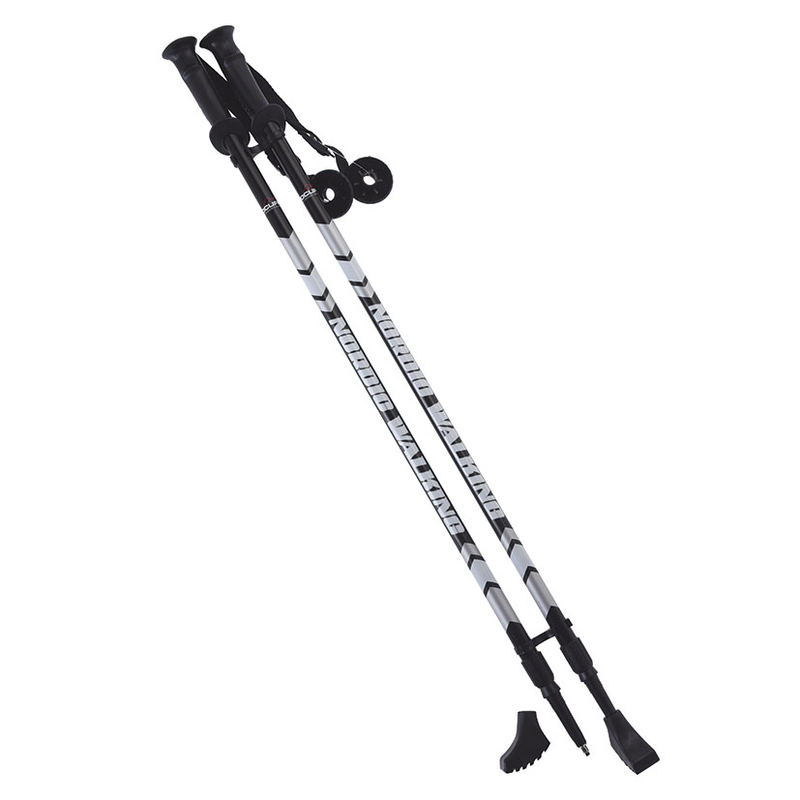 Este set de 2 bastones está fabricado en aluminio y son telescópicos. El mango es ergonómico y antichoque para un agarre cómodo. Además incorpora un pie de goma antideslizante que te proporcionará la mayor estabilidad y apoyo en cualquier tipo de terreno. Tiene un ajuste en altura de 110-140 cm.