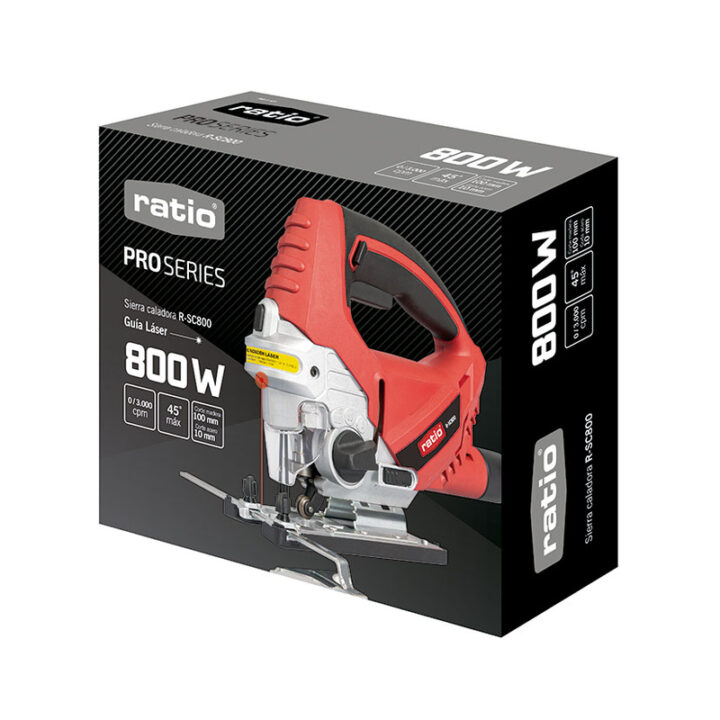 La sierra de calar ProSeries R-SC800 tiene el tamaño compacto el peso reducido y el excelente manejo que te proporcionarán un gran confort y un excelente control de la herramienta. Cuenta con pendular de 3 posiciones, 6 velocidades ajustables , empuñadura bimaterial, guía láser, guía lateral ajustable a 15 cm y base de alumino con protector de goma. Además, cuenta con un potente motor de 800 W, capaz de alcanzar una óptima profundidad de corte en madera, por lo que podrás realizar cualquier tipo de trabajo, sin problemas. El cambio de las cuchillas es rápido con inserción T (tipo Bosch) Se presenta en una caja.