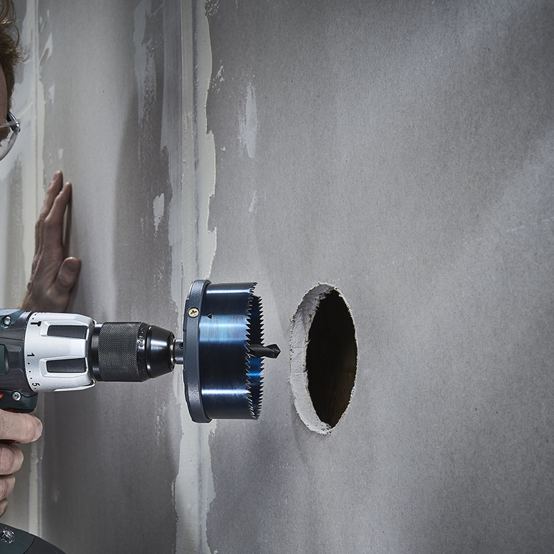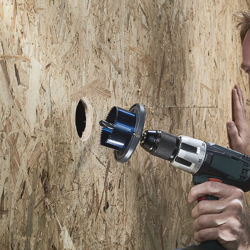 Este juego incluye 5 sierras de cambio rápido ø 60-95 mm, con fleje de acero templado, profundidad de corte de 33 mm y un vástago de Ø 8 mm, lo que proporciona gran estabilidad y fácil manejo. Está diseñada para trabajar en madera, tableros de madera estriada, tableros de virutas recubiertos de plástico, placas de yeso, materiales de construcción y tableros OSB. Su sistema de cambio rápido permite ajustar las sierras fácilmente, lo que optimiza el tiempo y facilita el trabajo en proyectos que exigen versatilidad y precisión. Broca centradora de 10 mm.