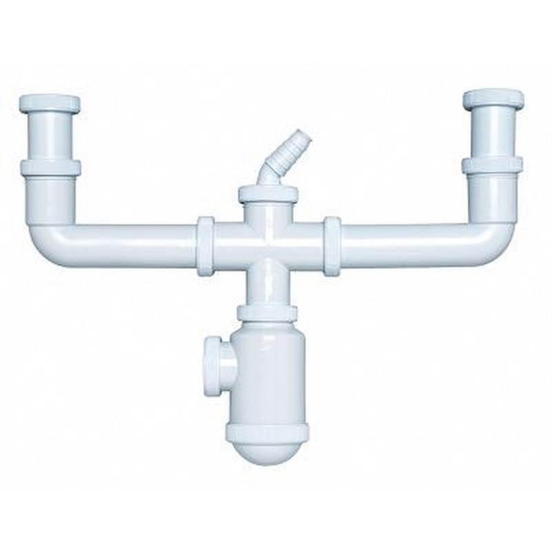Sifón de botella con salida horizontal y doble racor extensible y toma de electrodomésticos (tuercas locas). Se suministra con junta 1 1/2″ x 32 mm de diámetro para reducir la salida de 1 1/2″ a 1 1/4″. Viene presentado en una bolsa.