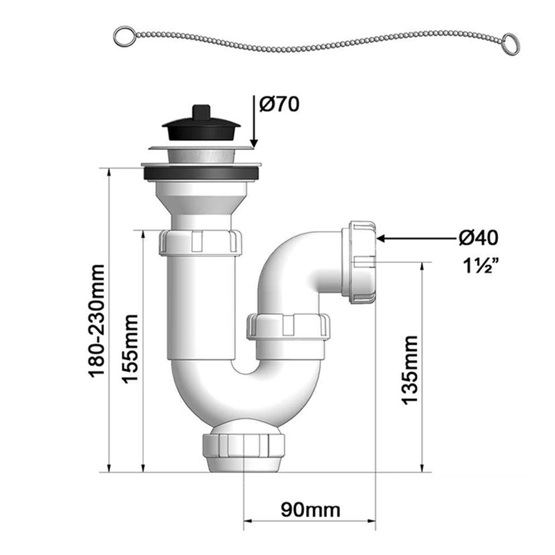 Sifón curvo extensible 135-180 mm fabricado en polipropileno y PVC plástificado. Con salida horizontal se suministra con reducción 1 1/4 . Incluye tapón. Viene presentado en una bolsa. Puedes consultar la ficha técnica que tenemos colgada en nuestra web.