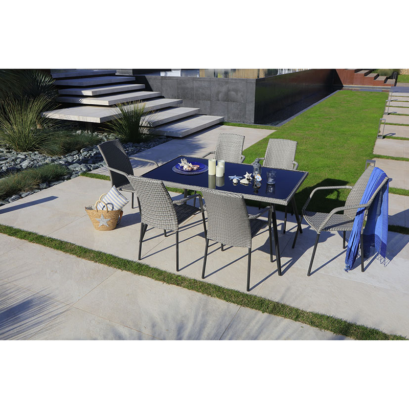 Sillón de estructura en metal y ratán sintético plano material de gran resistencia en exteriores. Combina el diseño elegante con su gran confort gracias a los reposabrazos que incorpora. Gracias al material de su estructura, hace que sea más ligero y de fácil transporte. Además, lo podrás combinar con el resto de mobiliario para jardín de la serie Habana que nosotros disponemos en nuestra web. El sillón tiene unas dimensiones de 67×56 cm y una altura de 90 cm.