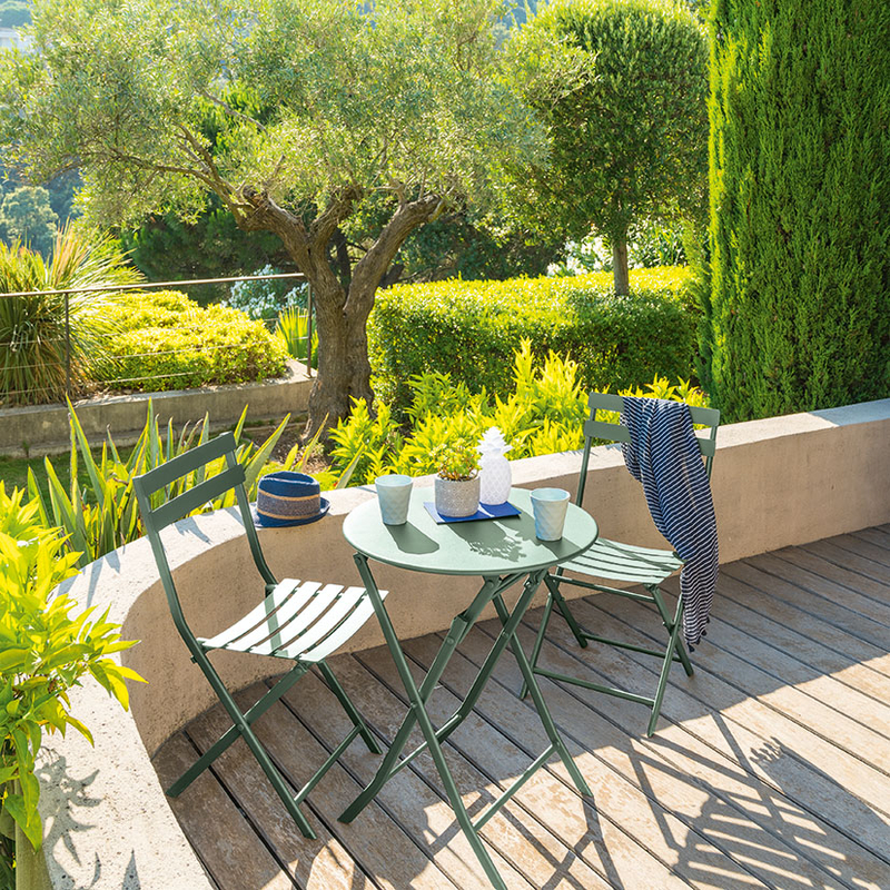 La silla tiene una estructura metálica tratada con galvanoplastia anticorrosión, antioxidante y contra la decoloración, ideal para exteriores. La podrás plegar fácilmente y para un mejor almacenaje. Es ideal para espacios reducidos. La puedes combinar con una de las mesas plegables del mismo color que tenemos en la web.