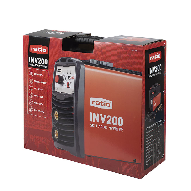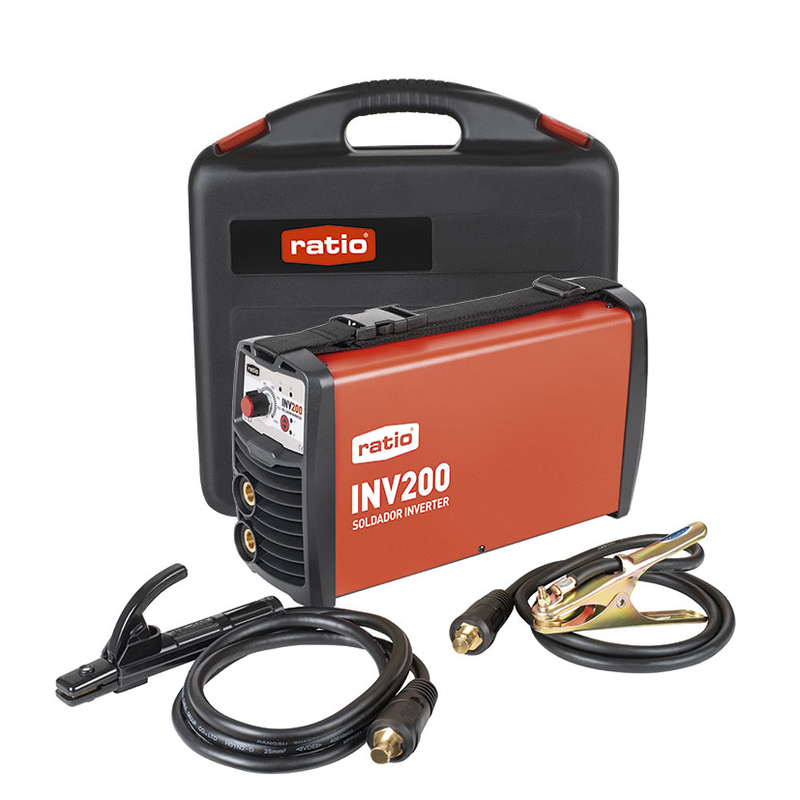 El modelo INV-130 A de RATIO es monofásico, ofrece la máxima fiabilidad y resistencia gracias a su sistema de construcción en doble carcasa y está equipado con los dispositivos Anti-Stick, Arc-Force y Hot-Start. Incorpora un maletín con juego de maza y pinza porta electrodos: rutilo, básico, acero inox, hierro fundido, aluminio, como utensilios básicos en tus actividades de soldadura. Cuenta con una potencia de 200A., su potencia absorbida es de 9 Kva. y la regulación (mín-máx) es de 20-200 A. Puedes utilizar electrodos de hasta 4 mm de diámetro y pesa 5,5 kg. Equipado con dispositivo Tig Lift-Arc Su grado de protección es de IP 21S. Se presentan en una caja.
