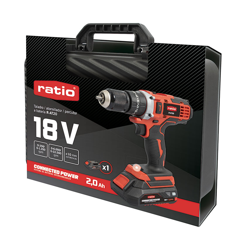 El taladro/atornillador percutor de la serie Connected Power cuenta con un potente motor y doble sistema de seguridad. La batería de litio influye de manera significativa en que este taladro/atornillador percutor reversible sea extraordinariamente ligero y compacto, pero muy potente. Además, al no tener efecto memoria, garantiza una vida más larga de la herramienta. Cuenta con 2 velocidades, portabrocas automático de ø2-10 mm, empuñadura bimaterial, batería de 2,0 Ah, cargador y maletín de transporte, para que puedas guardarlo cómodamente y llevarlo donde precises. Se presenta en una caja.