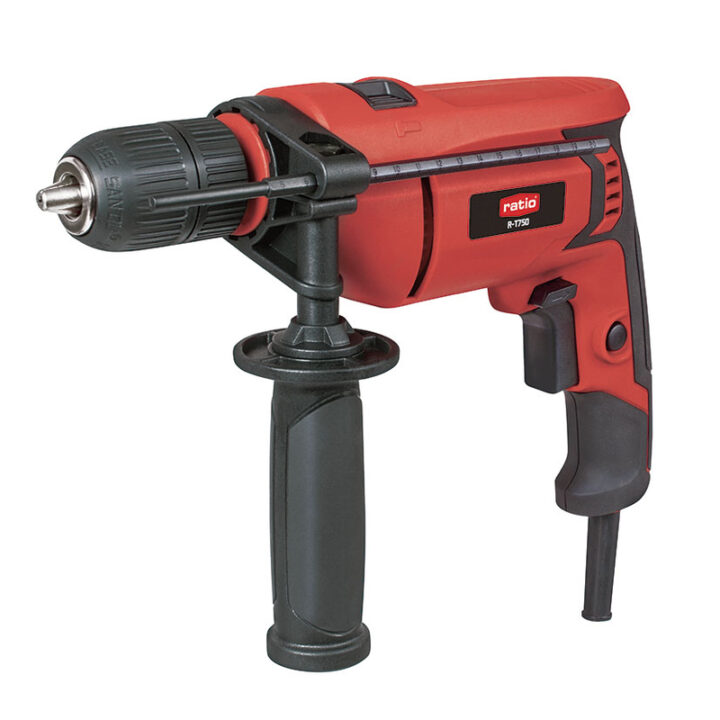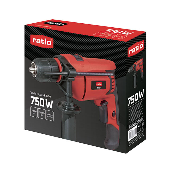 Debido a su gran polivalencia el taladro se considera una herramienta imprescindible en cualquier hogar. Para desarrollar su cometido a la perfección y garantizar resultados de calidad, debe ser resistente, robusto, manejable, eficaz y preciso. El taladro con cable RATIO R-T750 electrónico-reversible cuenta con estas cualidades y, además, incorpora portabrocas automático de 13 mm, empuñadura bimaterial, maletín de transporte y tope de profundidad. Se presenta en una caja.