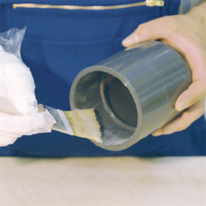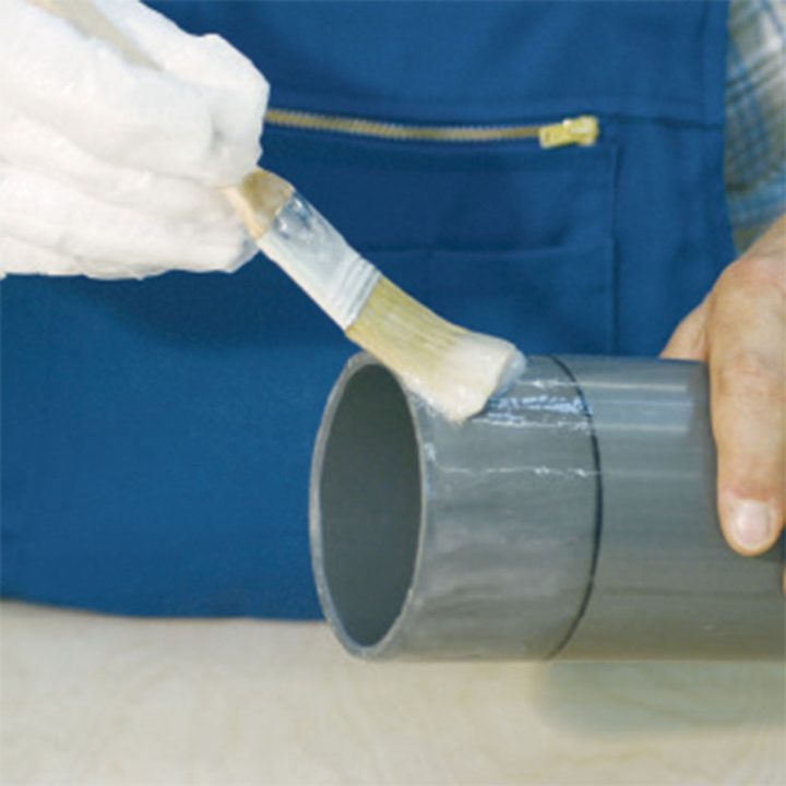 Actúa físicamente sobre el PVC disolviendo la zona superficial y formando un cuerpo entre adhesivo y material. Las uniones duran tanto tiempo como el material de PVC empleado.