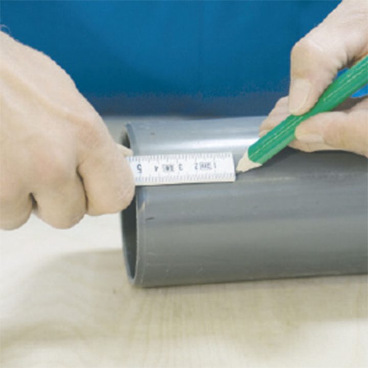 1. Marcar el tubo para controlar la profundidad del acoplamiento. Delimitar la superficie de aplicación.