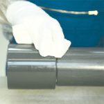 2. Desengrasar y limpiar las superficies de contacto con Tangit Limpiador PVC-U.