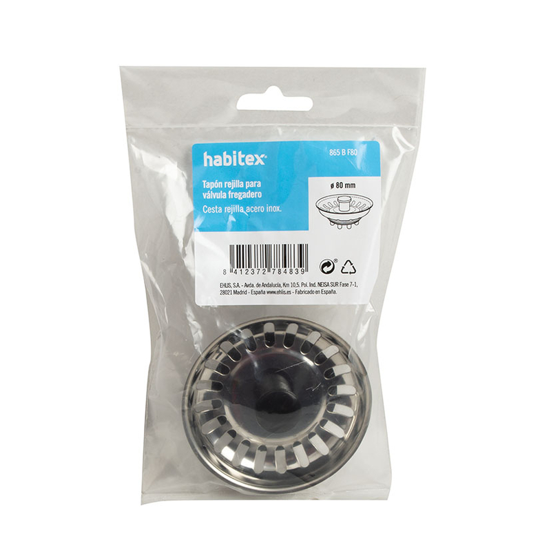 Tapón para fregadero que se adapta a la mayoría de los fregaderos estándar. Consta de una rejilla de acero inoxidable. Viene presentado en un doble blíster.