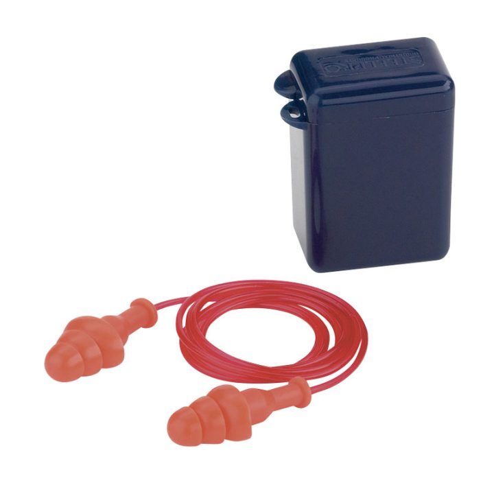 Tapones auditivos reutilizables de termoplástico TPR con cordón, de atenuación media (25dB). Son hipoalergénicos cónicos, muy suaves y de gran comodidad, permite que tengan una gran adaptabilidad al canal auditivo, de manera confortable. Es dieléctrico, sin componentes mecánicos (metal-free). Su estructura permite no tener contacto directo con los tapones para una mayor higiene. Están indicados para trabajos de construcción, talleres, industria del metal, química y en todas aquellas situaciones donde se deba proteger el usuario frente al ruido. Se presentan en un envase de 100 pares.