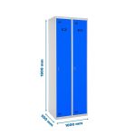 Taquilla metálica de 2 cuerpos con 2 puertas de color gris y las puertas azules. Las dimensiones son 1800x1000x500 mms.