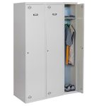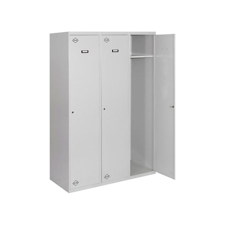 Taquilla metálica de 3 cuerpos con 3 puertas de color gris. Las dimensiones son 1800x1200x500 mms. Se entrega montado e incluye un estante, perchero, una cerradura, respiradero y etiquetero para mayor comodidad del usuario.