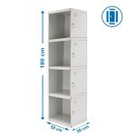Casillero metálico de 1 cuerpo con 4 puertas de color gris. Las dimensiones son 1800x300x500 mms. Se entrega desmontado e incluye un estante, perchero, una cerradura, respiradero y etiquetero para mayor comodidad del usuario. Se monta de forma fácil siguiendo las instrucciones o viendo el vídeo de montaje en Youtube. Este es un módulo adicional que necesita una inicial al que asociarse.