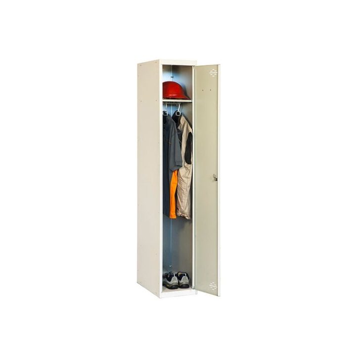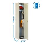 Taquilla metálica de 1 cuerpo con 1 puerta de color gris. Las dimensiones son 1800x400x500 mms. Se entrega montado e incluye un estante, perchero, una cerradura, respiradero y etiquetero para mayor comodidad del usuario.