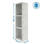 Casillero metálico de 1 cuerpo con 3 puertas de color gris. Las dimensiones son 1800x400x500 mms. Se entrega desmontado e incluye un estante, perchero, una cerradura, respiradero y etiquetero para mayor comodidad del usuario. Se monta de forma fácil siguiendo las instrucciones o viendo el vídeo de montaje en Youtube. Este es un módulo adicional que necesita una inicial al que asociarse.