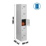Casillero metálico de 1 cuerpo con 5 puertas de color gris. Las dimensiones son 1800x400x500 mms. Se entrega montado e incluye una cerradura, respiradero y etiquetero para mayor comodidad del usuario.