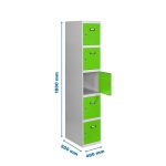 Casillero metálico de 1 cuerpo con 5 puertas de color gris y las puertas verdes. Las dimensiones son 1800x400x500 mms.