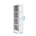 Casillero metálico de 1 cuerpo con 4 puertas de color gris y las puertas blancas. Las dimensiones son 1800x400x500 mms.