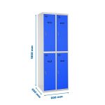 Taquilla metálica de 2 cuerpos con 4 puertas de color gris y las puertas azules. Las dimensiones son 1800x600x500 mms.
