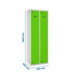Taquilla metálica de 2 cuerpos con 2 puertas de color gris y las puertas verdes. Las dimensiones son 1800x600x500 mms.