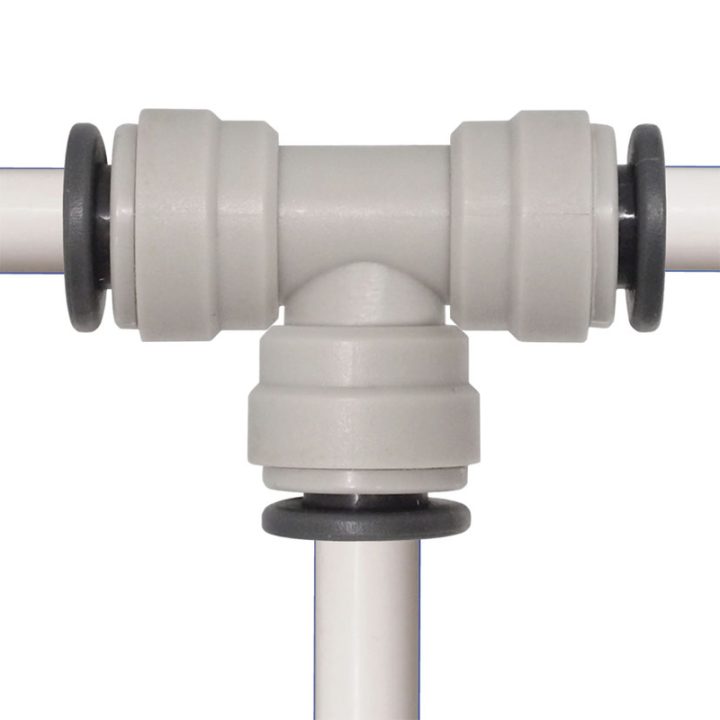 «T» automática de 3/8″x3/8″ para poder completar la instalación. Un lado seguirá el recorrido principal de la instalación mientras que el otro abrirá una nueva vía de tubería para cubrir otra área de nebulización.