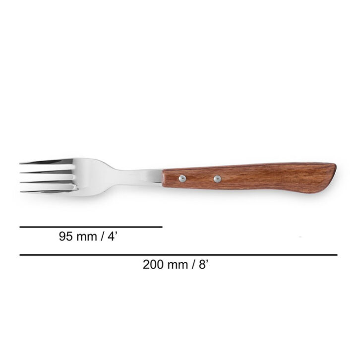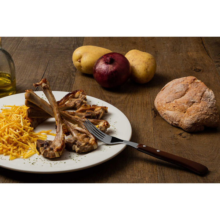 Está fabricado en acero inoxidable y el mango en madera. Es ideal para pinchar bien carnes chuletas o bistecs fácilmente. Los tenedores chuleteros ARCOS son aptos para el lavavajillas.