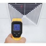 Gracias a su rayo láser puedes ver directamente dónde estás midiendo mide la temperatura (el rayo láser se puede apagar opcionalmente). Debido a los diferentes factores de radiación de calor (emisividad) de los diferentes materiales a medir, el factor de emisividad se puede ajustar entre 0,1 y 1 para mejorar la precisión de la medición. La óptica de medición es 12: 1, lo que significa que a una distancia de 12 cm se puede comprobar un área de aprox. 1 cm.