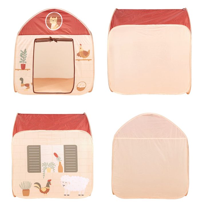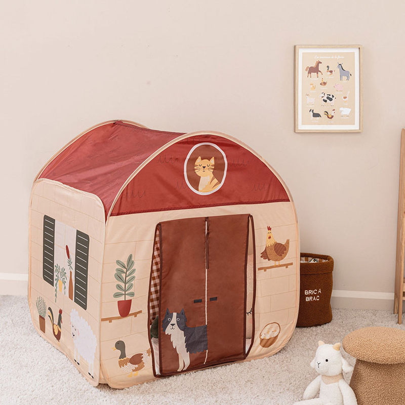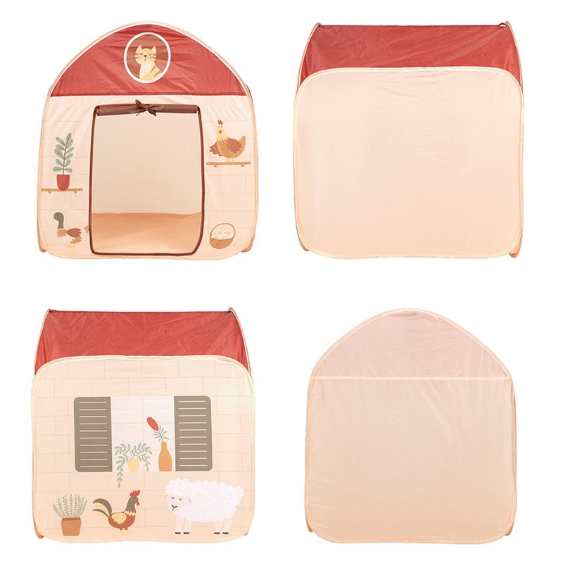 Esta divertida tienda infantil plegable Pop-up con diseño de casa de campo es el espacio perfecto para que los niños disfruten de horas de juego imaginativo. Con dimensiones de 96 cm de ancho, 85 cm de profundidad y una altura de 85 cm, es lo suficientemente amplia para jugar cómodamente, pero fácil de plegar y guardar cuando no se usa. Su estructura Pop-up permite un montaje rápido y sencillo.