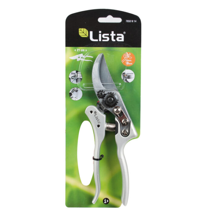 Es una tijera de poda con una longitud de 21.2 cm. Sus hojas de corte están fabricadas en acero forjado calidad 65CRM afiladas en ambos lados para un corte deslizante.