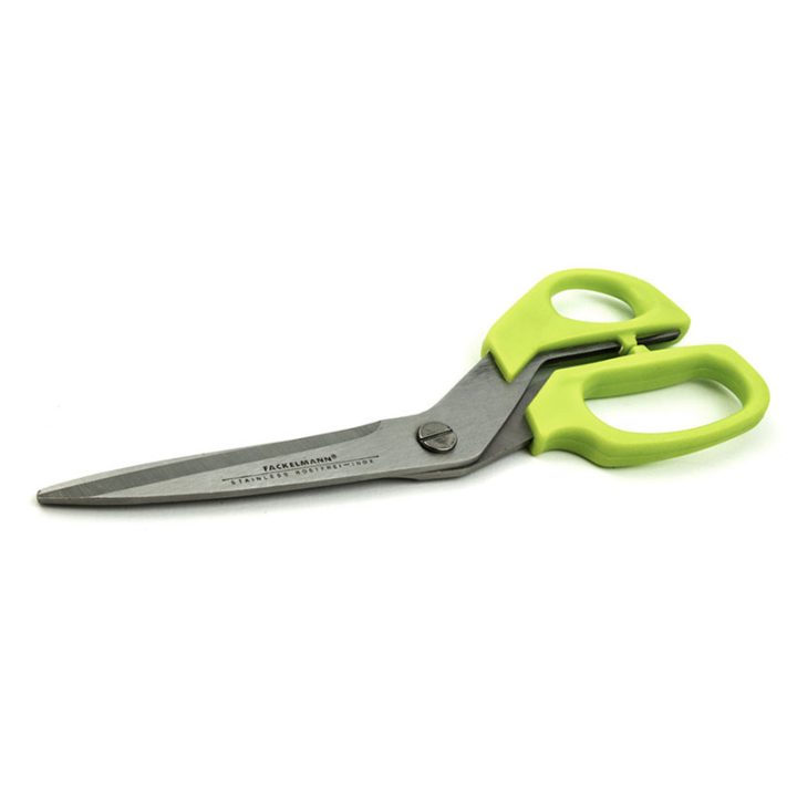 Esta tijera está fabricada en acero inoxidable pulido que te permite cortar, verduras, carnes y pescados. El mango está fabricado en polipropileno y tiene una longitud de 22,5 cm y se presenta en un doble blíster.