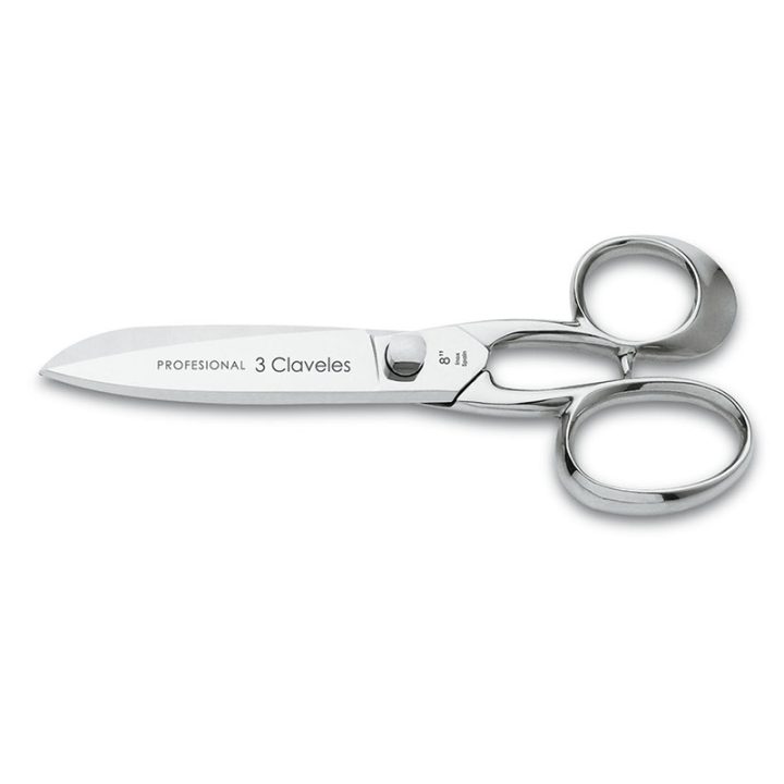 Esta tijera está fabricada en acero inoxidable pulido y tiene un filo microdentado que evita que se resbalen los alimentos cuando los estas cortando. Además los mangos son ergonómicos para una mayor comodidad. Se presenta en una caja.
