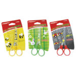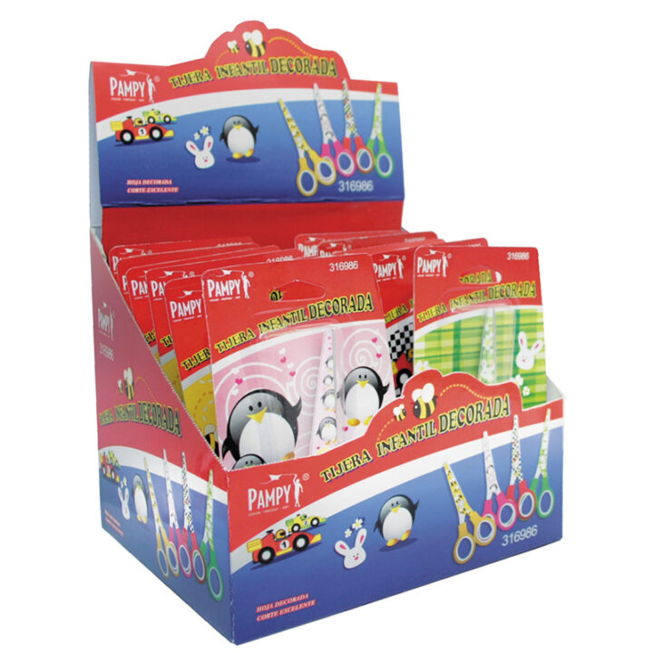 Está tijera tiene el mango de plástico y punta roma diseñada para que los niños la utilicen de una forma cómoda y segura. Está disponible en diseños infantiles variados. Viene presentado en blíster.