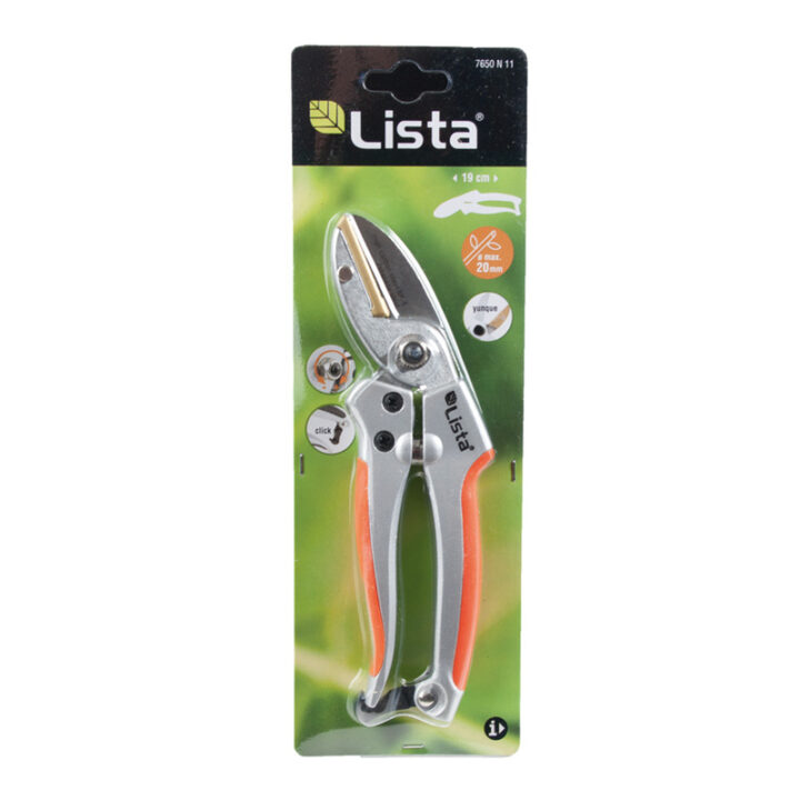 Es una tijera de poda con una longitud de 19 cm de longitud con cuchillas en acero de alta calidad SK5 y un diámetro de corte cizalla de 20 mm.