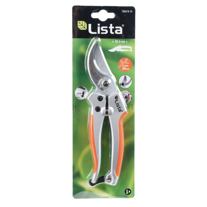 Es una tijera de poda de 20.5 cm de longitud con cuchillas en acero de alta calidad SK5 y un diámetro de corte deslizante de 20 mm.