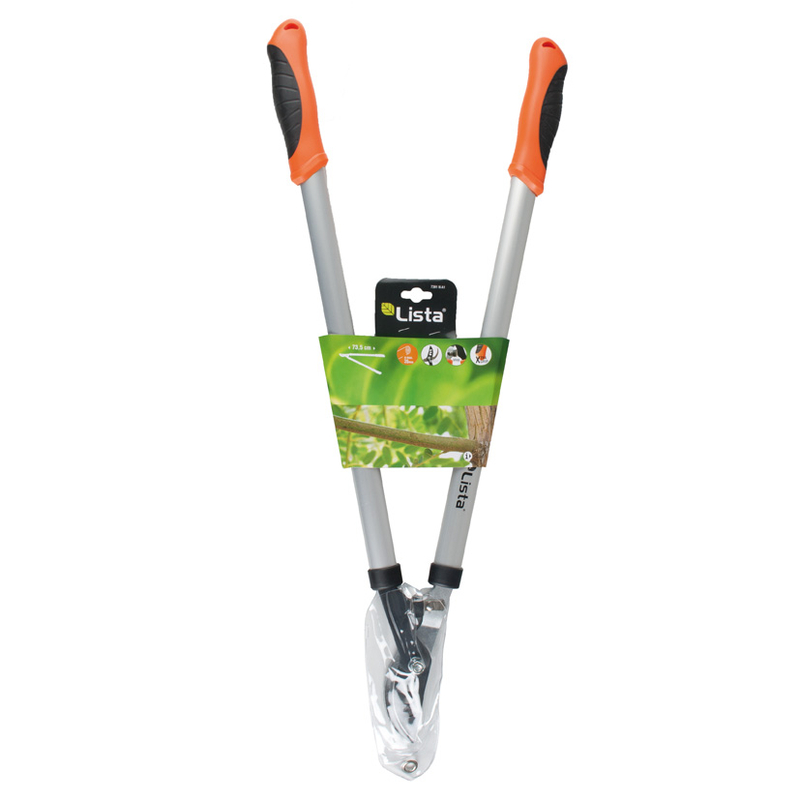 Es una tijera de poda con unas hojas de corte deslizantes y la cuchilla tiene un recubrimiento antiadherente. Las empuñaduras son ergonómicas y tienen un recubrimiento antideslizante. Brazos tubulares de aluminio. Se presenta en una bolsa protectora.