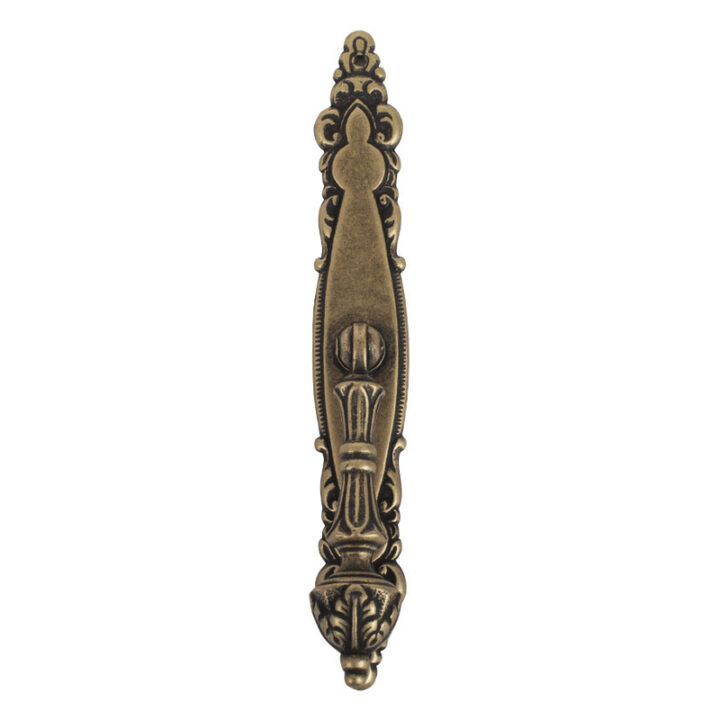 Este Tirador está fabricado en zamac y tiene una forma de péndulo con una longitud de 135 mm y un acabado en cuero viejo. Se presenta en una bolsa.