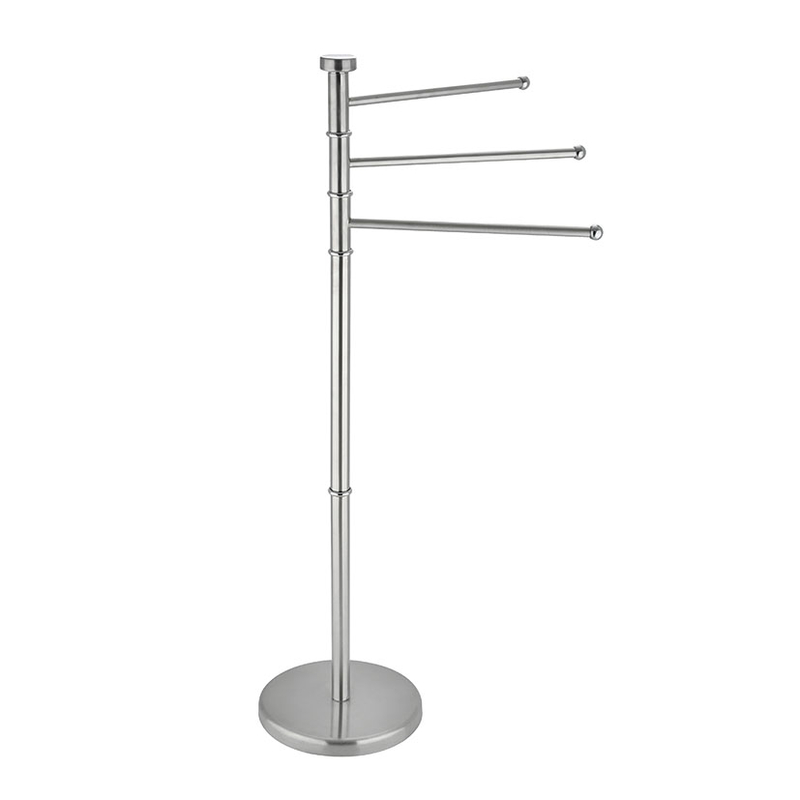 Este toallero está fabricado en acero inoxidable satinado, está artículado y dispone de 3 brazos para que puedas colgar 3 toallas. No requiere que realices ningún tipo de instalación, solo lo colocas en un rincón de tu baño y listo!. Tiene unas dimensiones de Ø 22x37xh.86 cm.