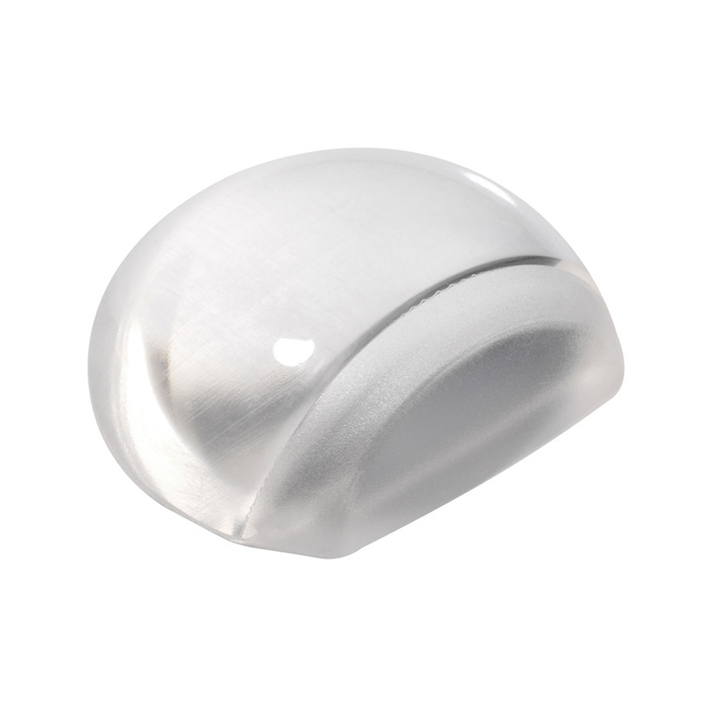 Este tope para puerta tiene una forma semiesférica es autoadhesiva y transparente. Se presenta en un blíster.