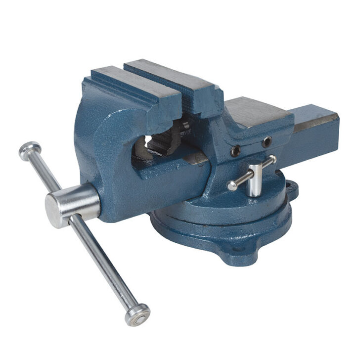 Tornillo de banco giratorio RATIO profesional 7965. Herramienta de sujeción imprescindible en cualquier taller e ideal para fijar piezas y poder trabajar sobre ellas. Robusto, funcional y fácil de manejar, el tornillo de banco de sobremesa RATIO se caracteriza por su base giratoria y su palomilla de sujeción. Está forjado con calidad industrial, lo que garantiza una excelente calidad y durabilidad del producto. Tiene 100 mm de apertura e incluye mordazas para tubos y 2 tornillos laterales para que puedas ajustar la guía fácilmente. Yunque incluido. Viene presentado en una caja.