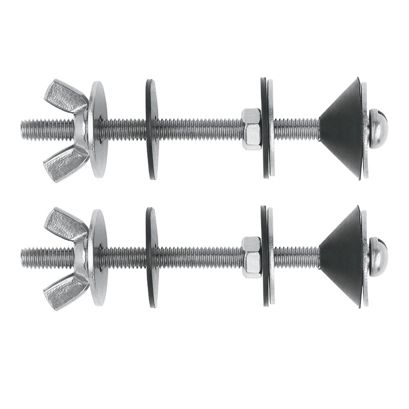 Este juego de dos tornillos en acero inoxidable se presenta en una bolsa con 2 tornillos juntas y tuercas.